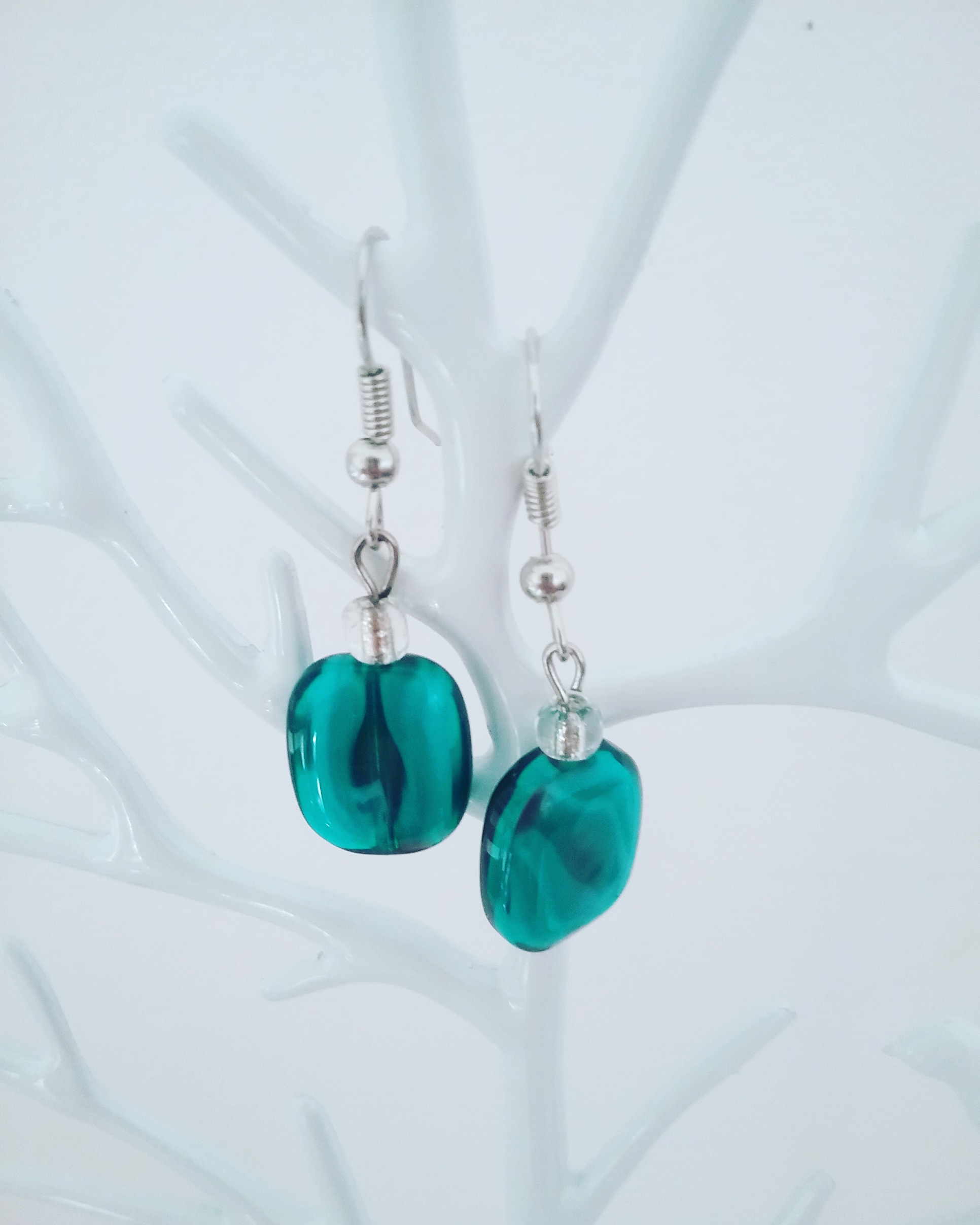 Earrings with swirls inside the beads.