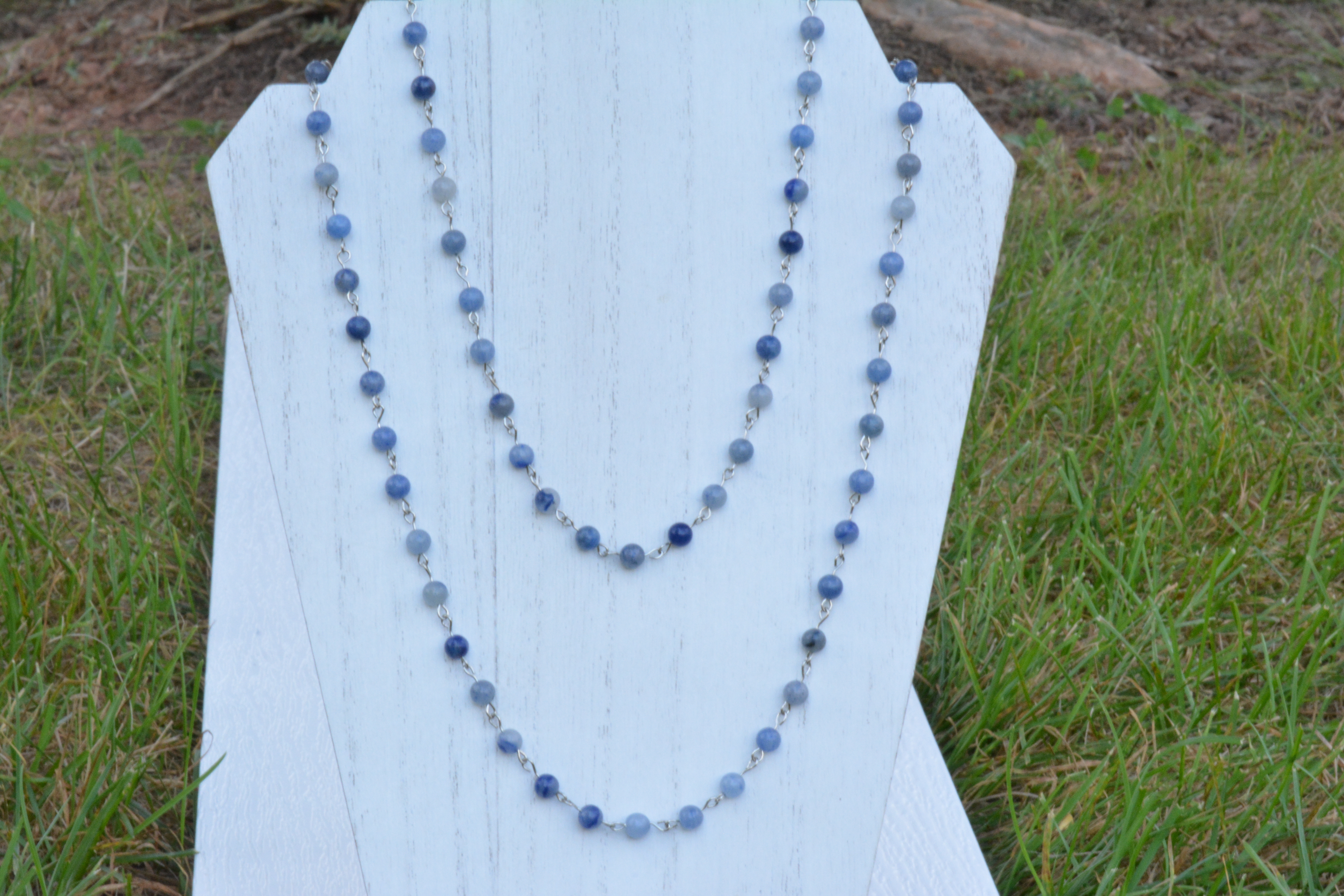 A double-stranded necklace made of beaded chain.